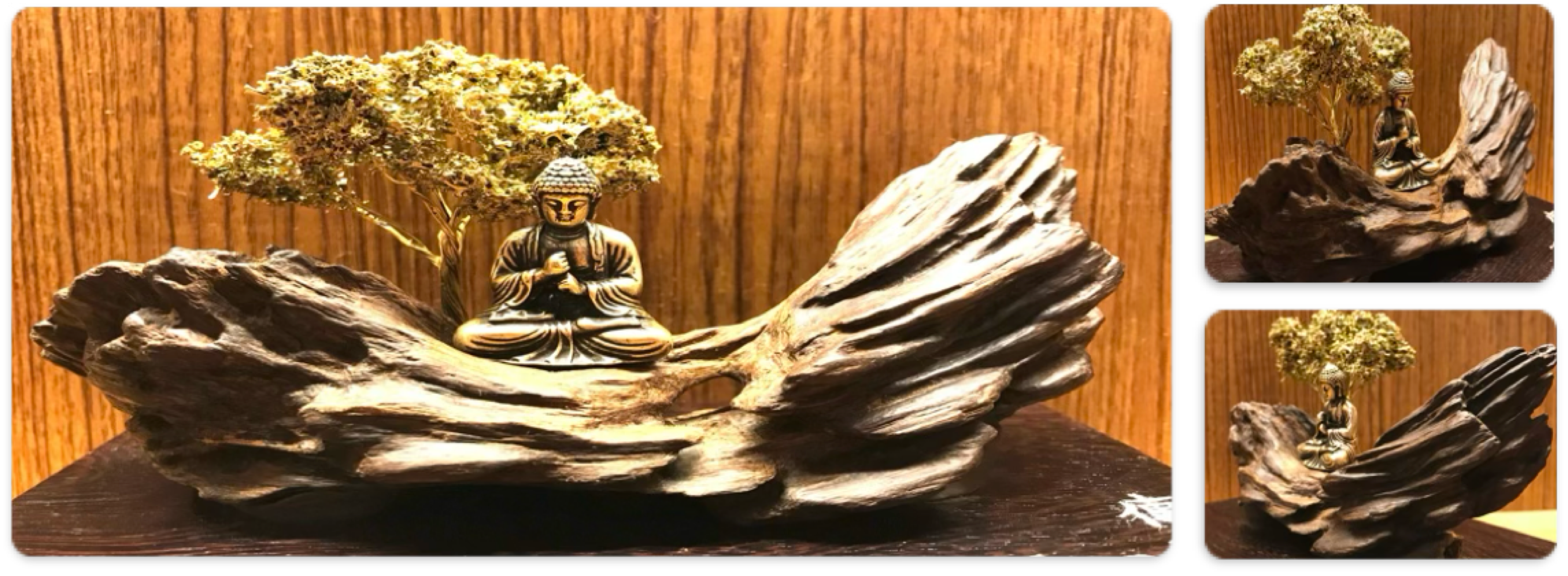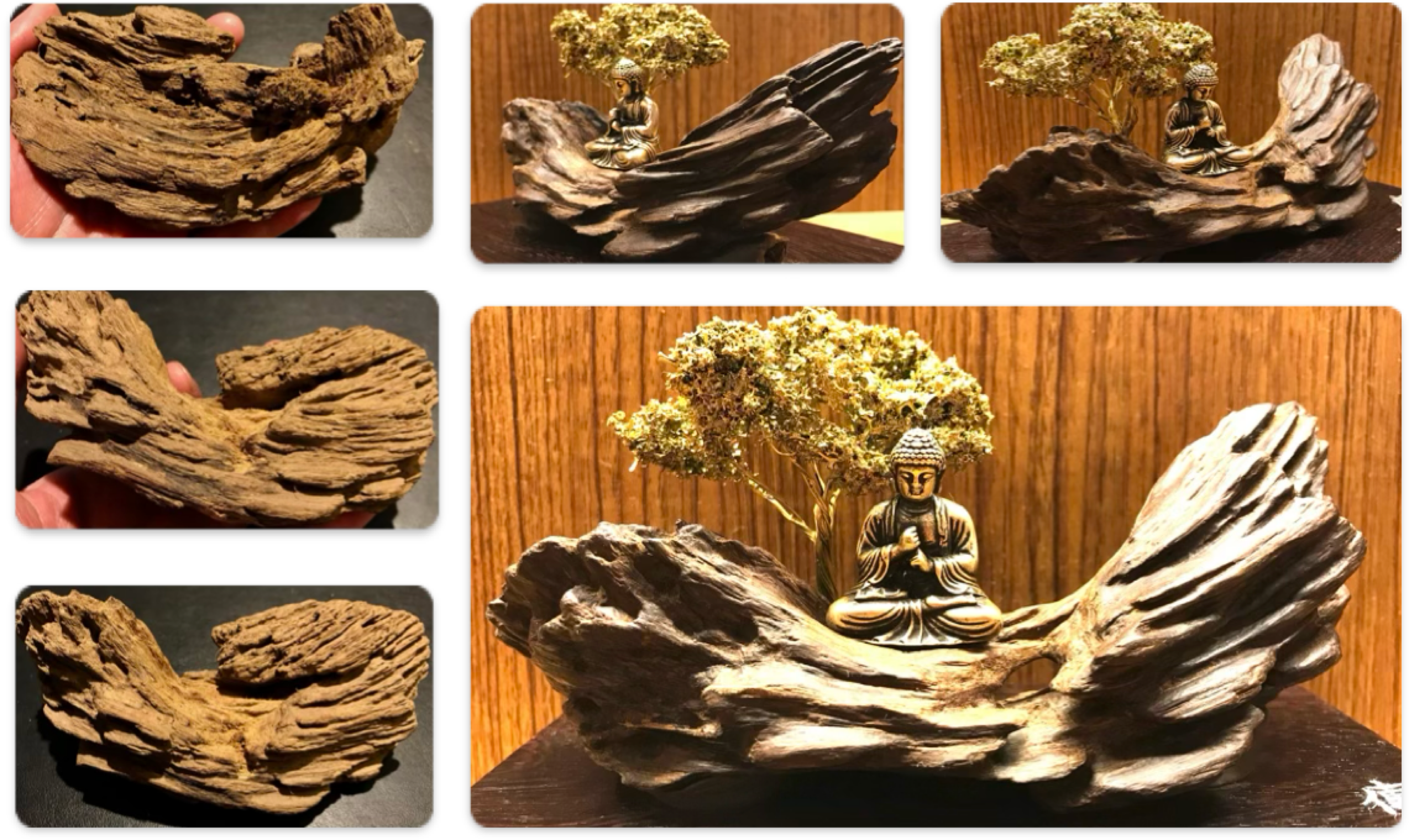 這件作品,取其泰國黃土沉的奇特造型,搭配作者巧思,創作成大日如來說法的意境,除了這件泰國黃土沉的稀有,再加上所創作的意境,而使這件更藝術氣息外,而變的更為具有收藏價值。